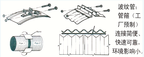 施工快镀锌管由于管节长,管箍(工厂预制)连接简便、快速可靠,受环境影响小。直径1200㎜的管,最快速度一天可安装长度400米;而水泥管打垫层、封口、包角、养生等时间长,每天最多安装长度40米;塑料管是热熔法连接,受气候、温度影响大,一天只能安装长度150米。